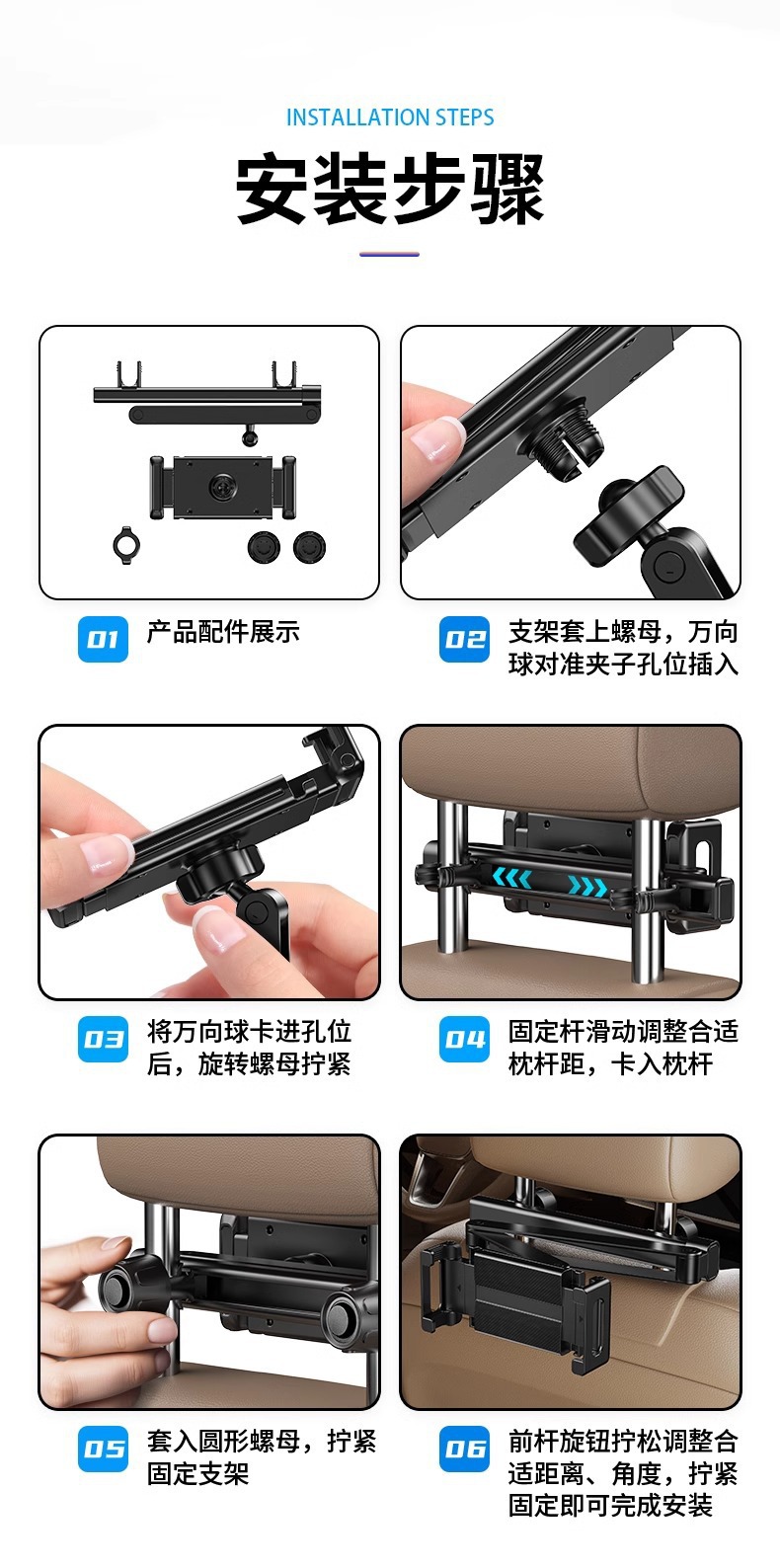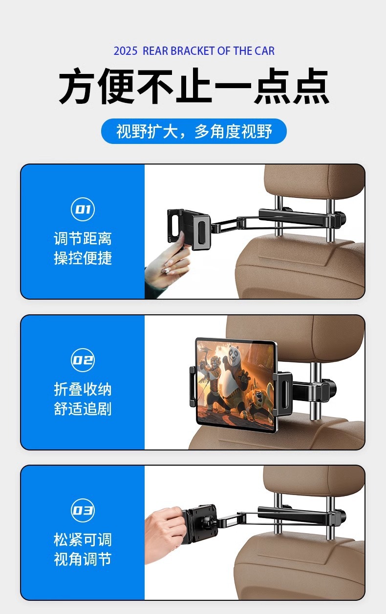汽车后排头枕平板手机支架可伸缩支撑固定车载平板支架工厂直销