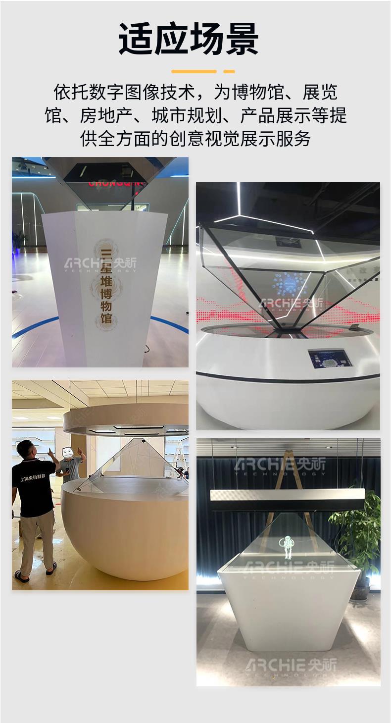 ホログラム投影展示盤360度裸眼3d三次元ピラミッド懸濁画像展示室インタラクティブ展示盤
