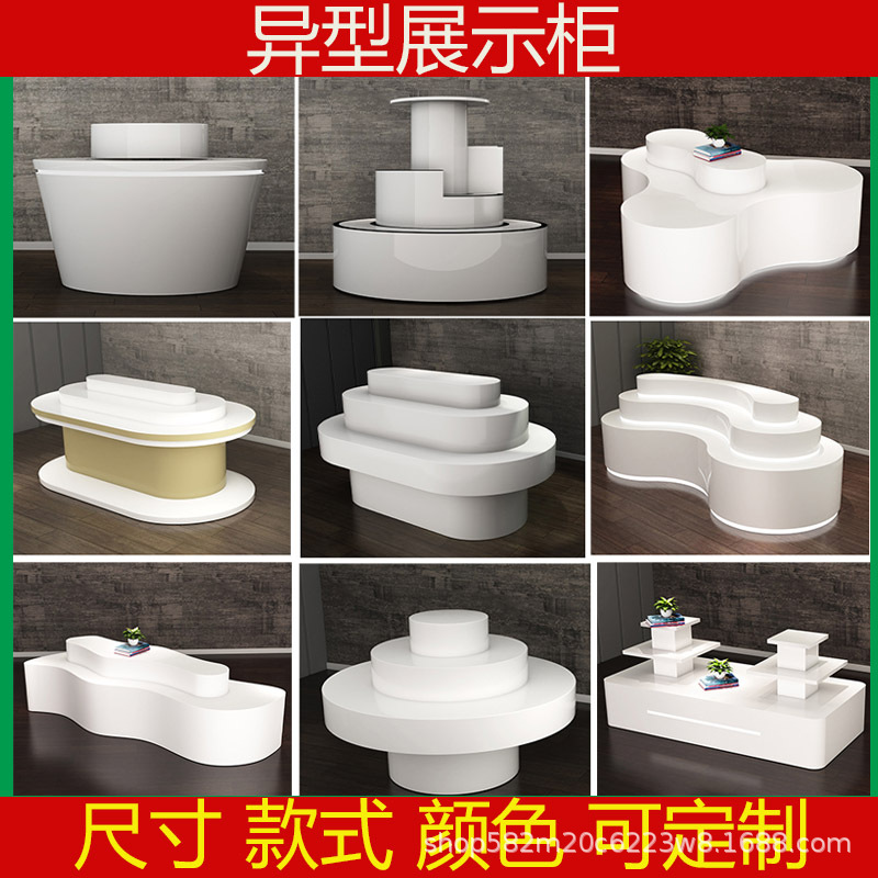 テクノロジーホール特殊形状発光ディスプレイテーブルペイントディスプレイキャビネットディスプレイキャビネット展示衣類展示ホールプラットフォームアイランドカウンター