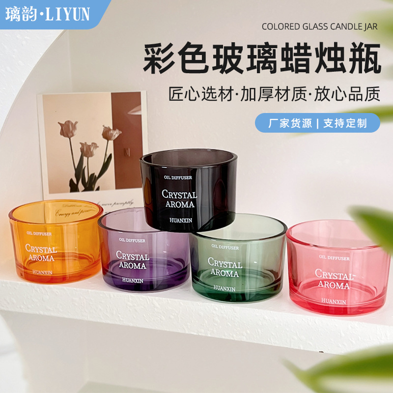 卸売カラフルなキャンディージャーキャンドルカップ空のカップカラフルなジュエリーボックス収納ガラス瓶ハイエンドキャンドルホルダー装飾品