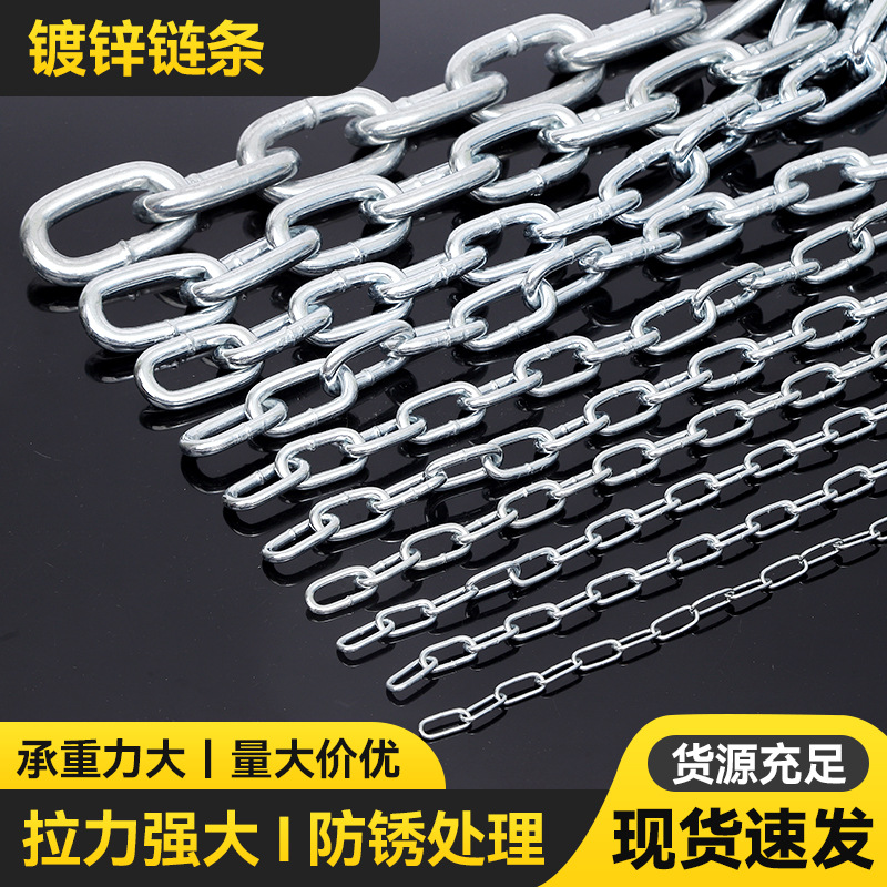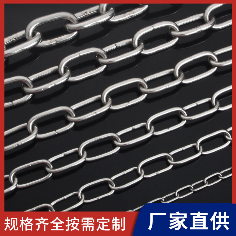 不锈钢链条铁链长环链子吊灯晾衣栏杆起重链条镀锌链条河道防护链