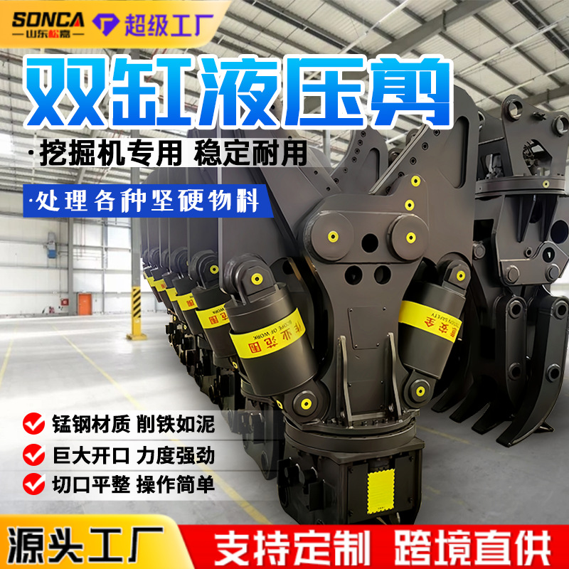掘削機二重シリンダー油圧カッター、鉄筋切断、廃鉄筋切断、油圧カッター、360度回転破砕プライヤー