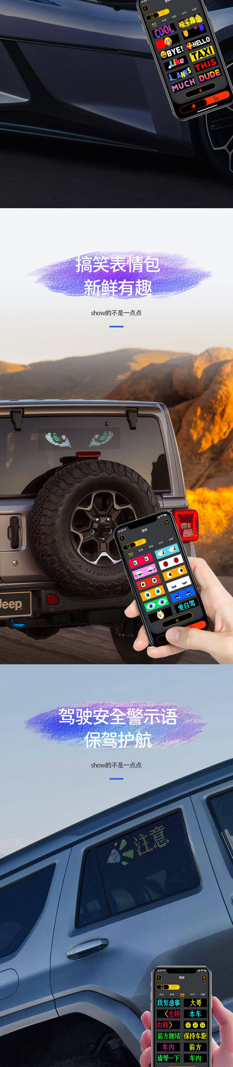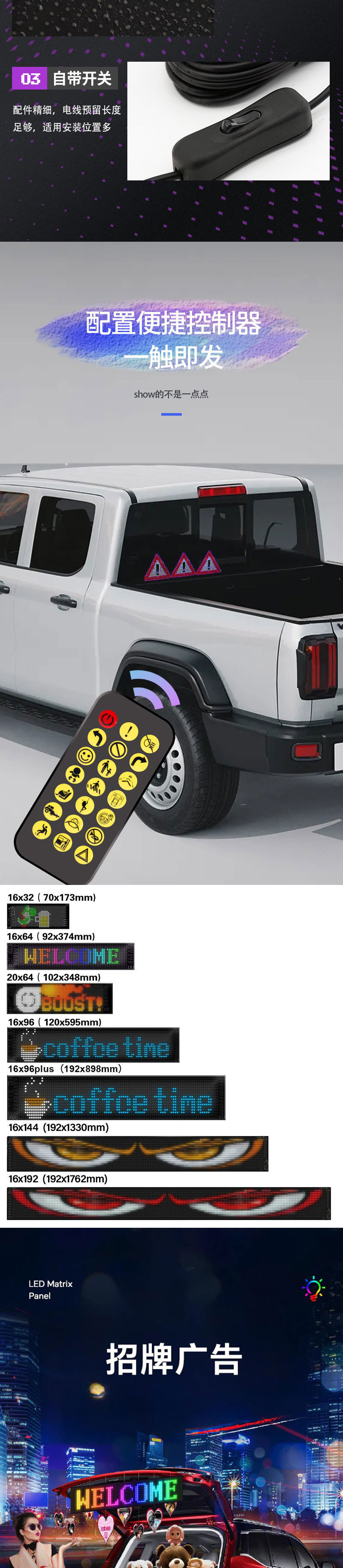 クロスボーダー人気車載ledスマートソフトスクリーンライト無線APP表情ディスプレイ自動車後窓LED広告灯