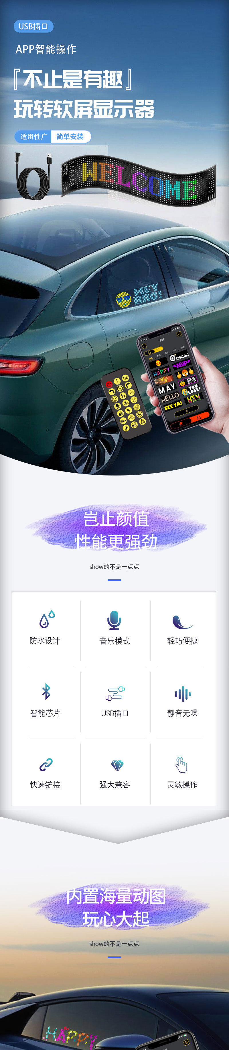 LED 車ソフトスクリーン USB 車柔軟な広告スクリーン APP Bluetooth ウィンドウガラス悪魔の目ディスプレイ