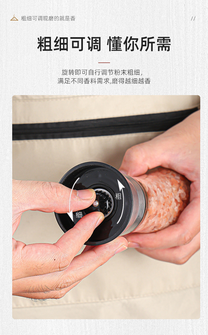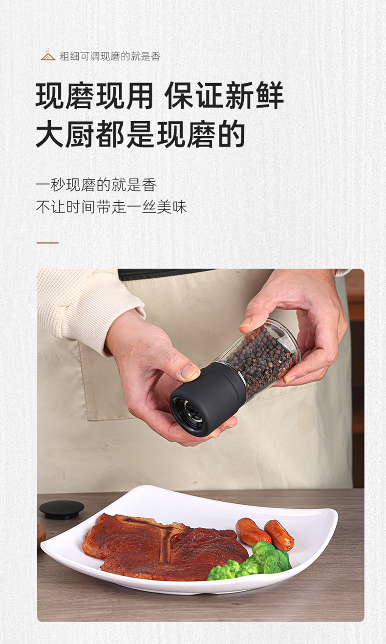 跨境手动研磨器亚马逊不锈钢玻璃研磨器黑胡椒花椒海盐调味撒料瓶