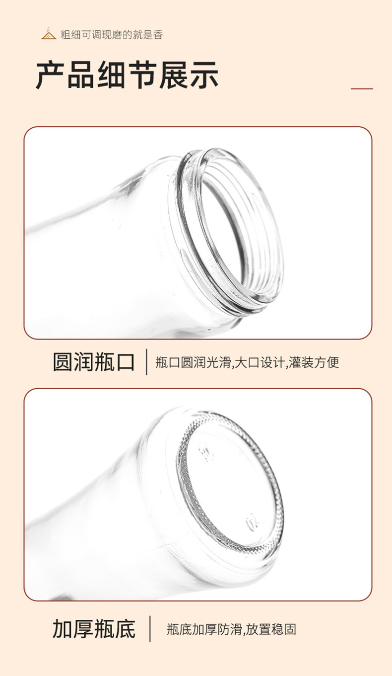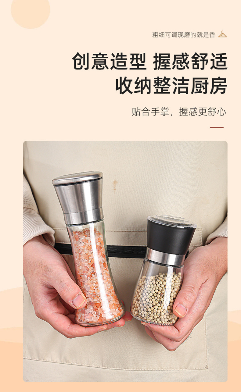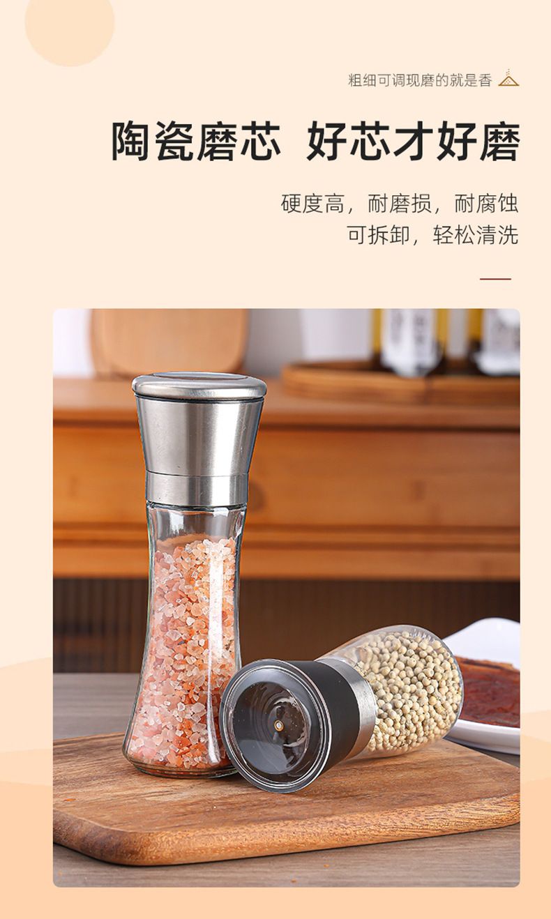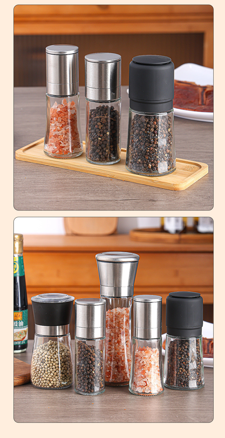胡椒研磨器ステンレス手動ガラス研磨瓶現在、サンショウ粉調味料瓶砕海塩顆粒家庭用
