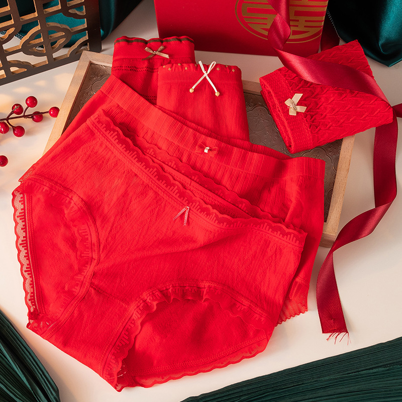 大きい赤い下着の女性の無痕の抗菌の股のセクシーなレースの中で腰の本命年の結婚のお祝いの通気の三角のズボン