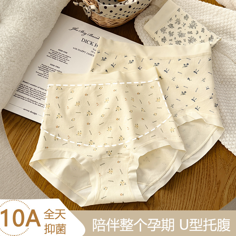 10A婴儿棉孕妇内裤女高腰孕前中后期碎花纯棉抗菌加长裆女士内裤