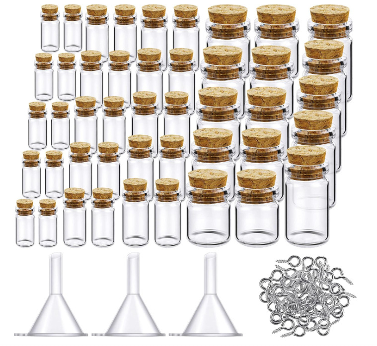 50個のガラスの小さい瓶の願い事の瓶の漂流の瓶は羊の角の釘の漏斗の麻縄のミニのコルクの栓の願い事の瓶の装飾を持ちます。