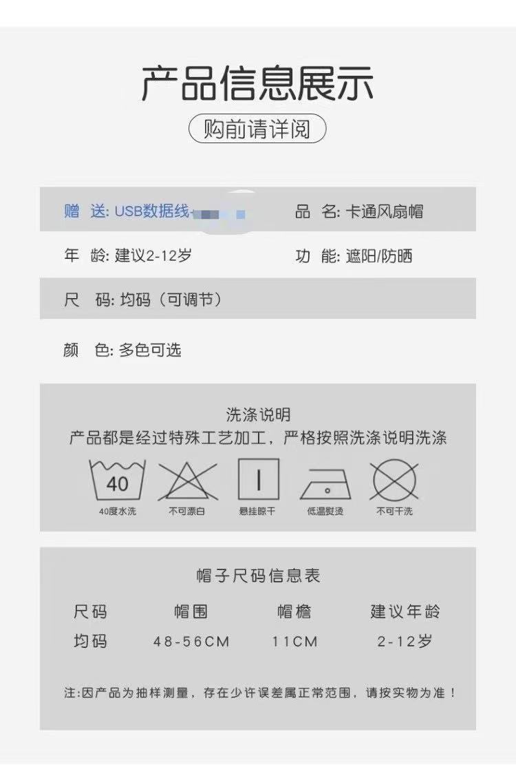 子供用USB充電ファンキャップ夏の日よけ帽子屋外旅行日焼け止めキャップ