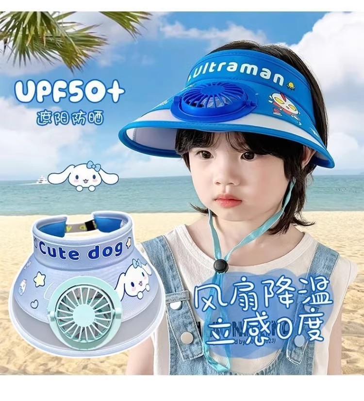 儿童风扇空顶夏季奥特曼遮阳帽防晒男童女童宝宝遮阳太阳帽帽子