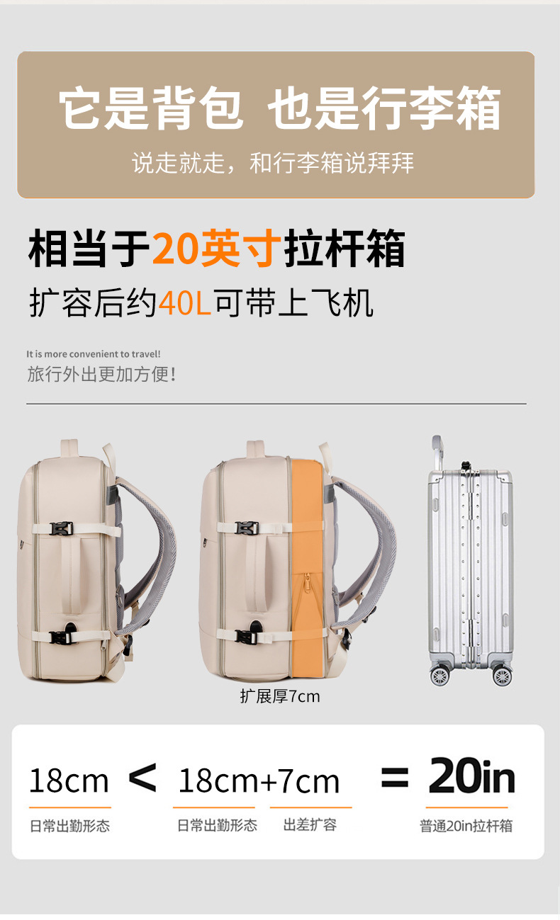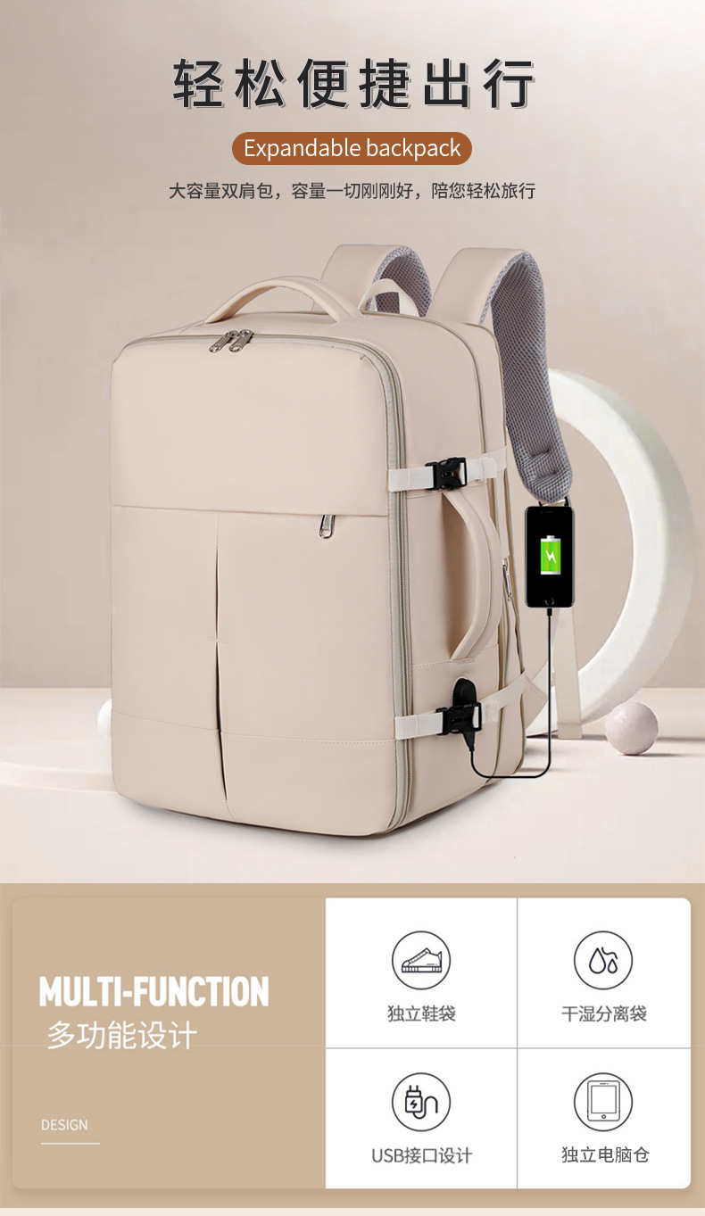 跨境旅行双肩包女潮大容量多功能行李背包出差旅行书包通勤双肩包