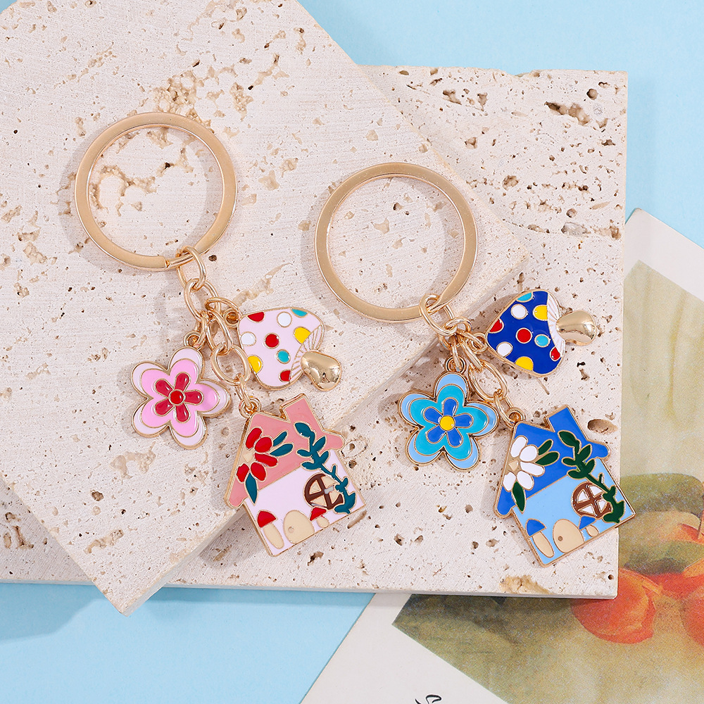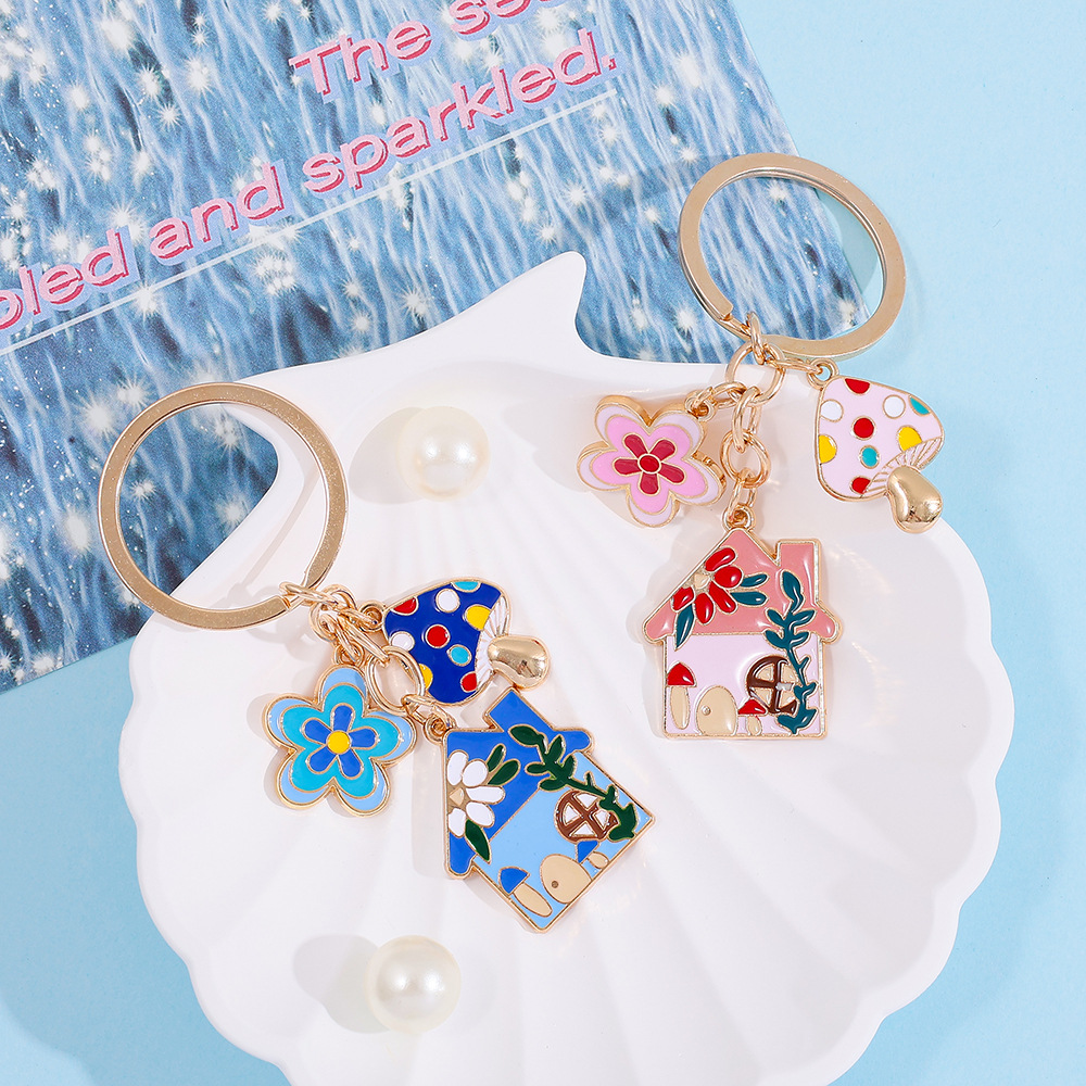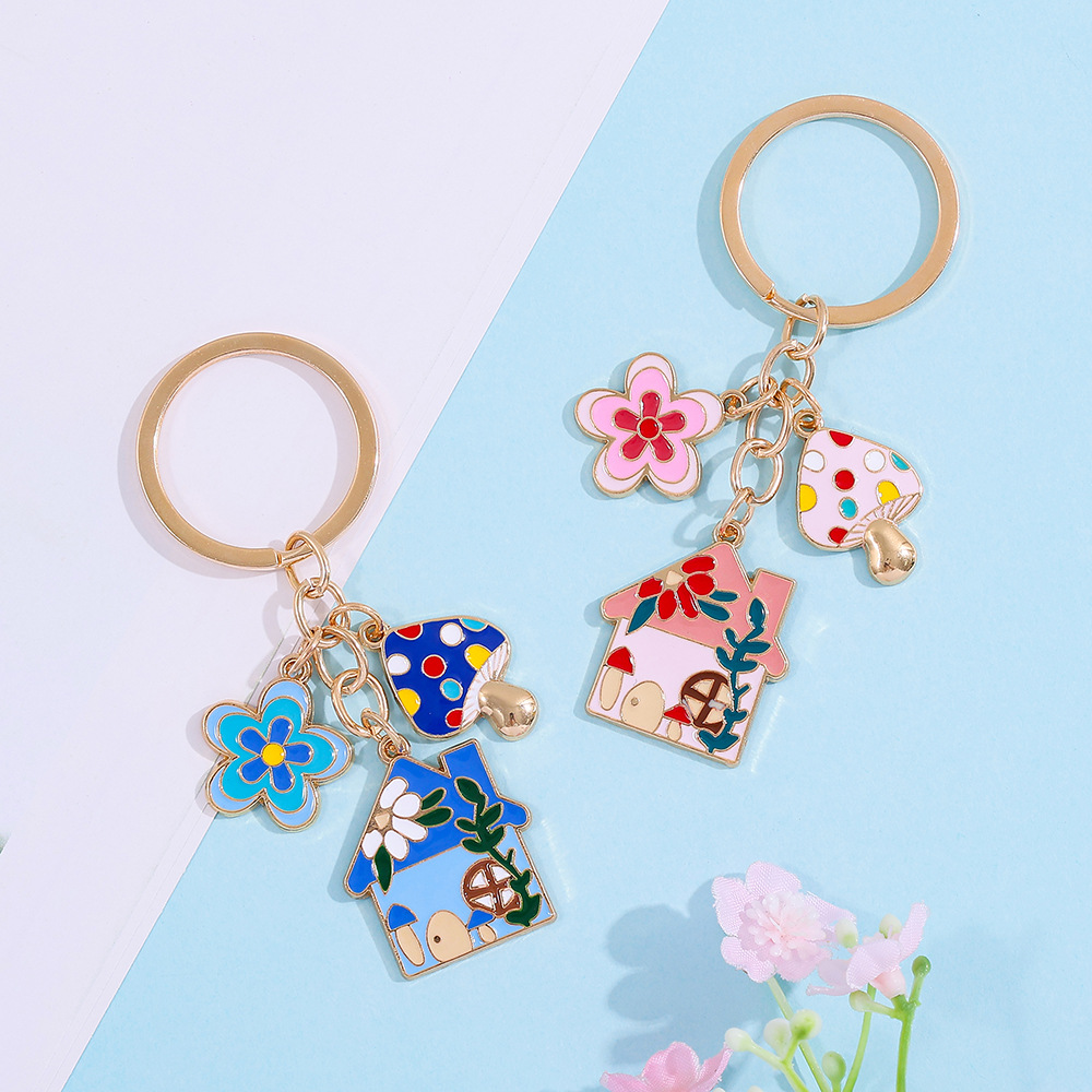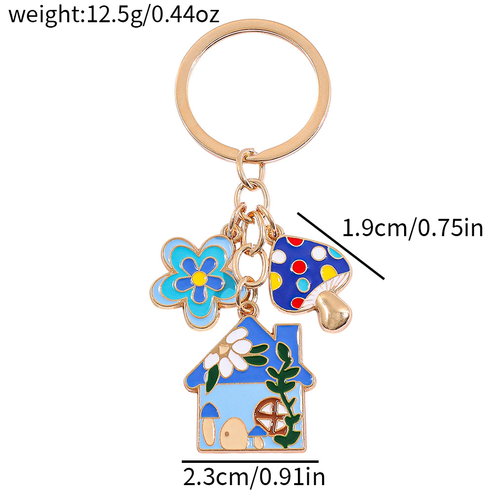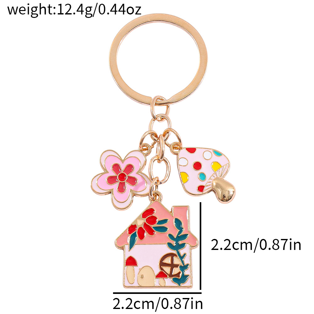 韓国スタイルの装飾アクセサリーハウスフラワーキノコ亜鉛合金キーホルダー車のバッグキーチェーンペンダントジュエリー