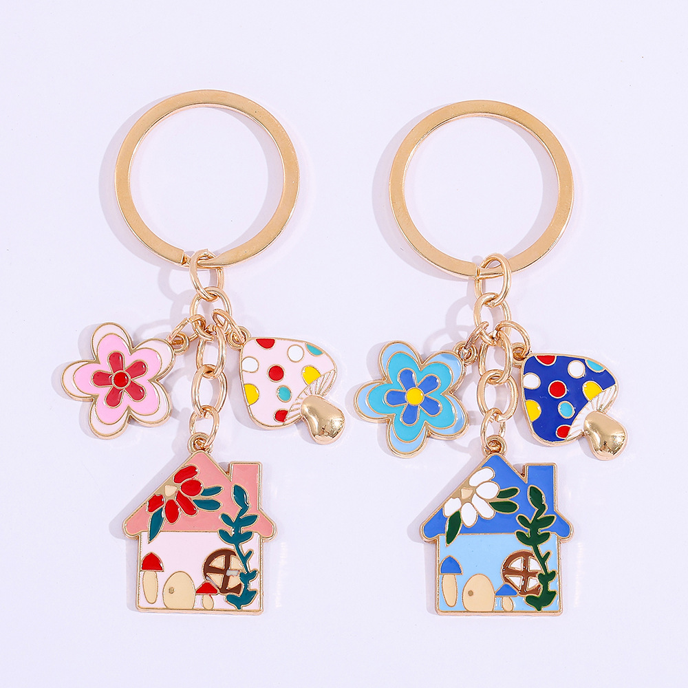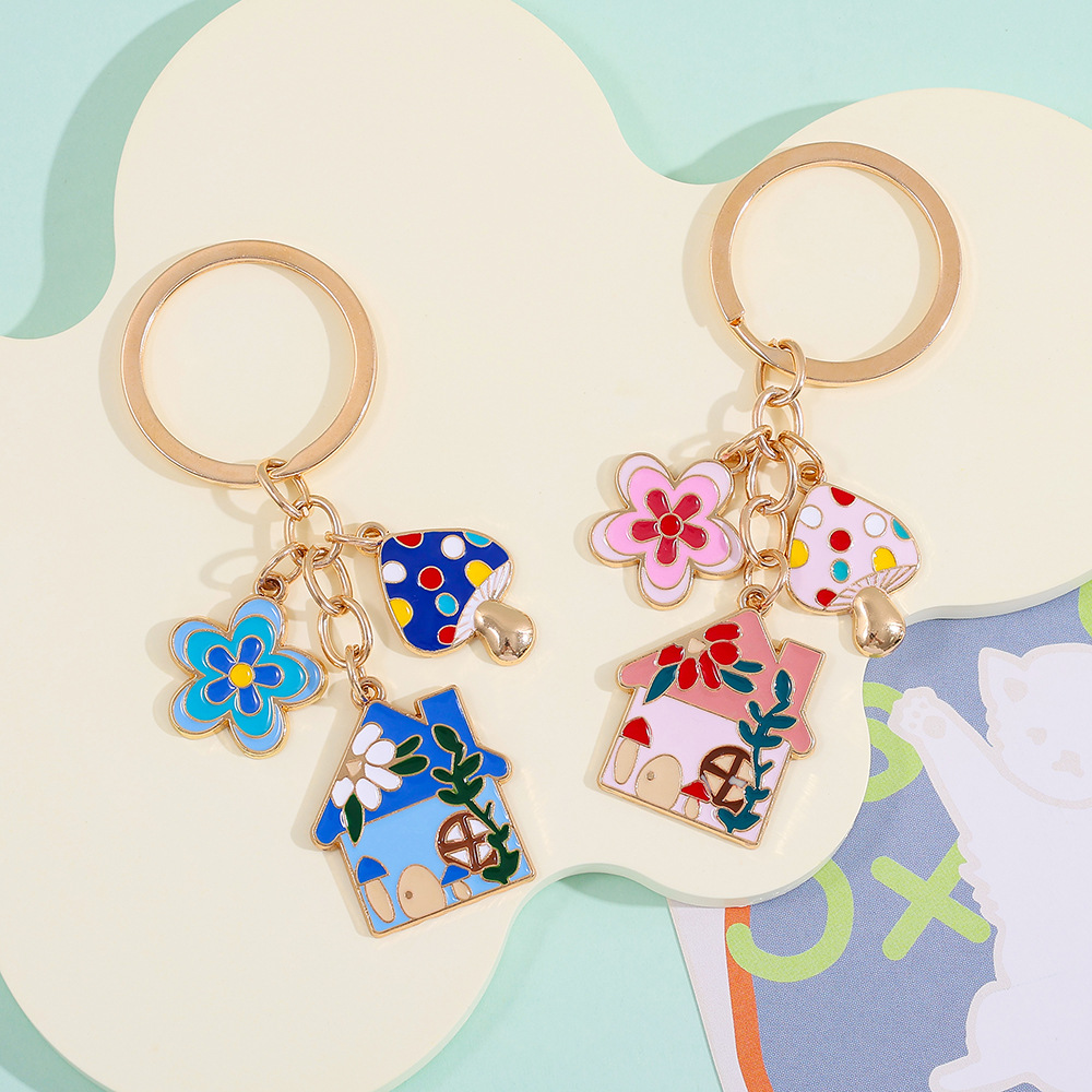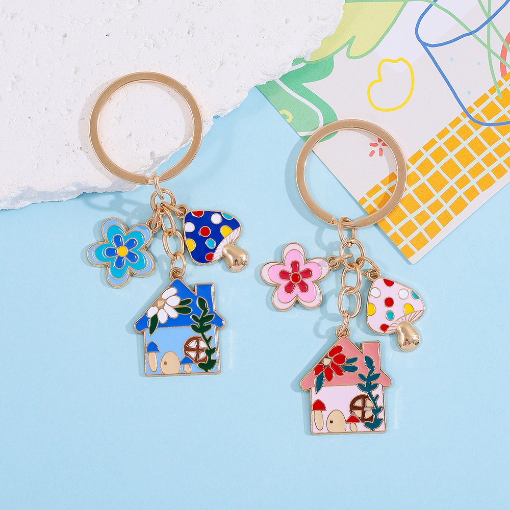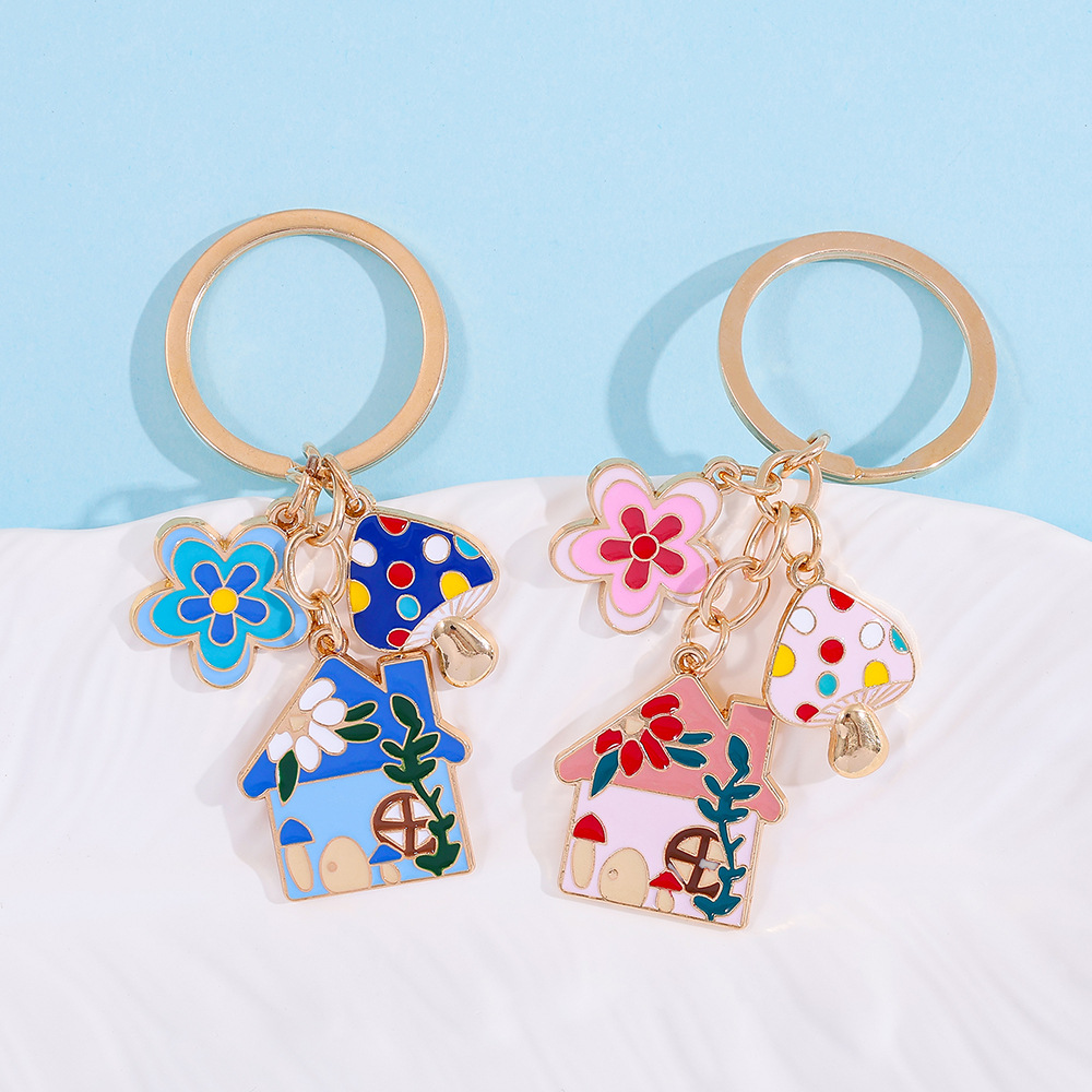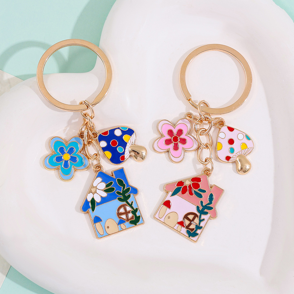 韓国スタイルの装飾アクセサリーハウスフラワーキノコ亜鉛合金キーホルダー車のバッグキーチェーンペンダントジュエリー