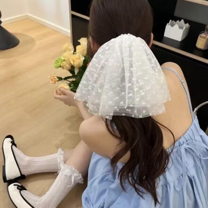 アップグレードされたヘアゴム! 新しい甘い夏のバスボールメッシュ雰囲気多層スタッズポニーテールヘアピン