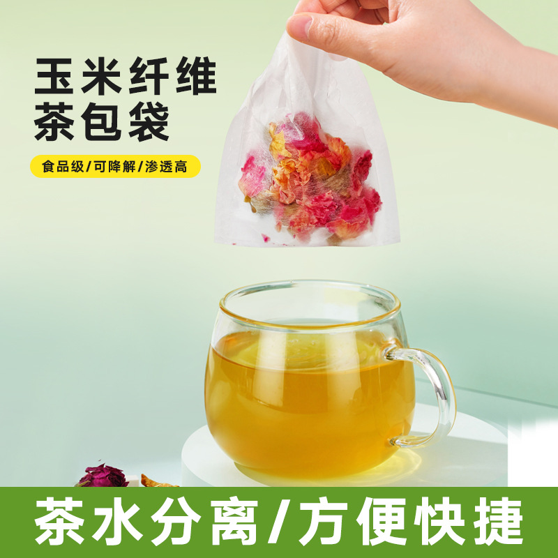 トウモロコシ繊維逆折袋100個使い捨て花茶泡茶袋食品級ろ過袋小泡茶袋