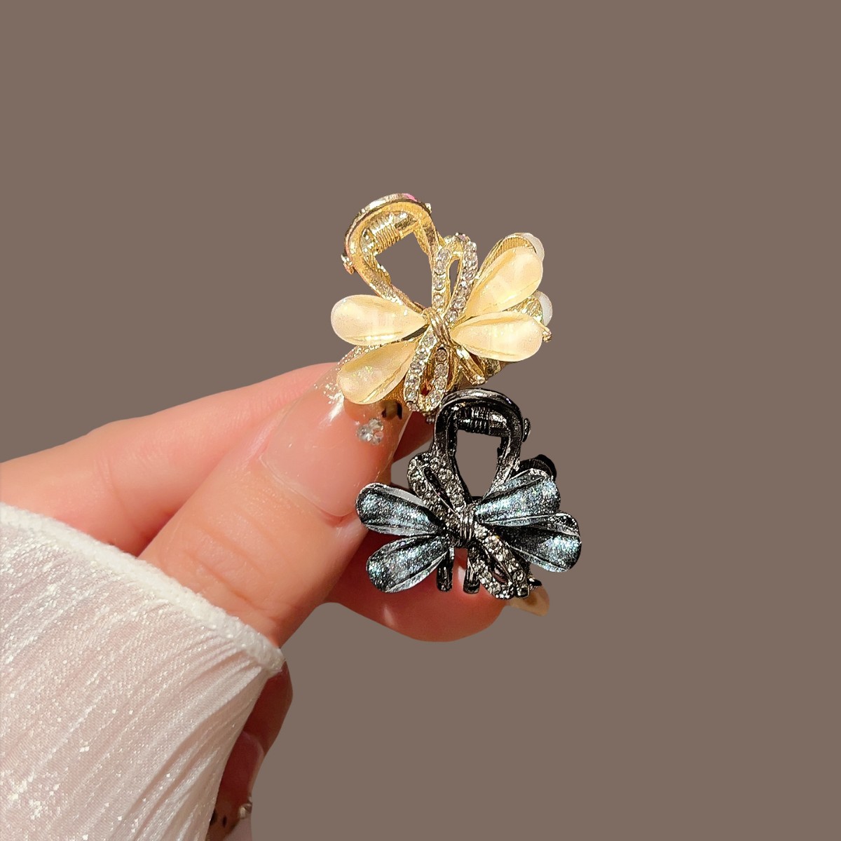 精致猫眼水钻蝴蝶结小抓夹甜美发夹女高级感后脑勺半扎刘海夹发卡