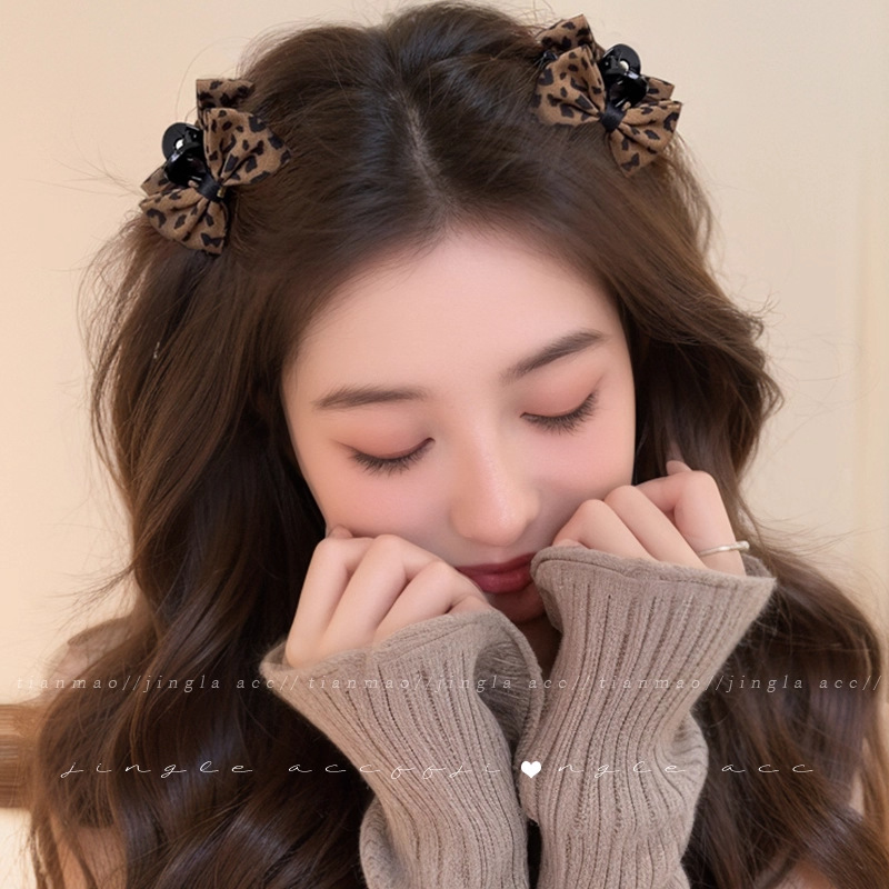 豹纹公主头蝴蝶结抓夹侧边小夹子前额刘海夹发夹高级感头饰发卡