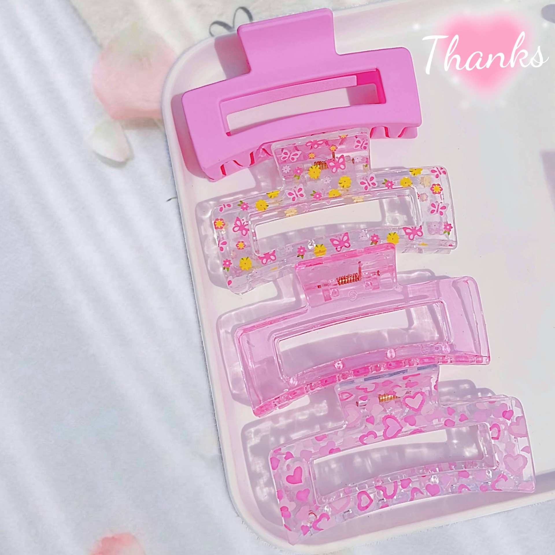 跨境4PCS情人节爱心印花抓夹夏季热转印蝴蝶甜美发饰希音热卖方块