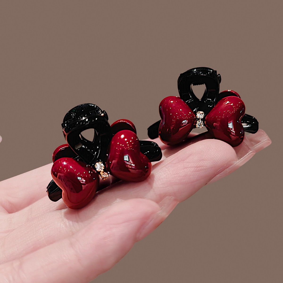 红色蝴蝶结水钻小抓夹女侧边发夹小巧迷你刘海碎发夹小夹子头饰品