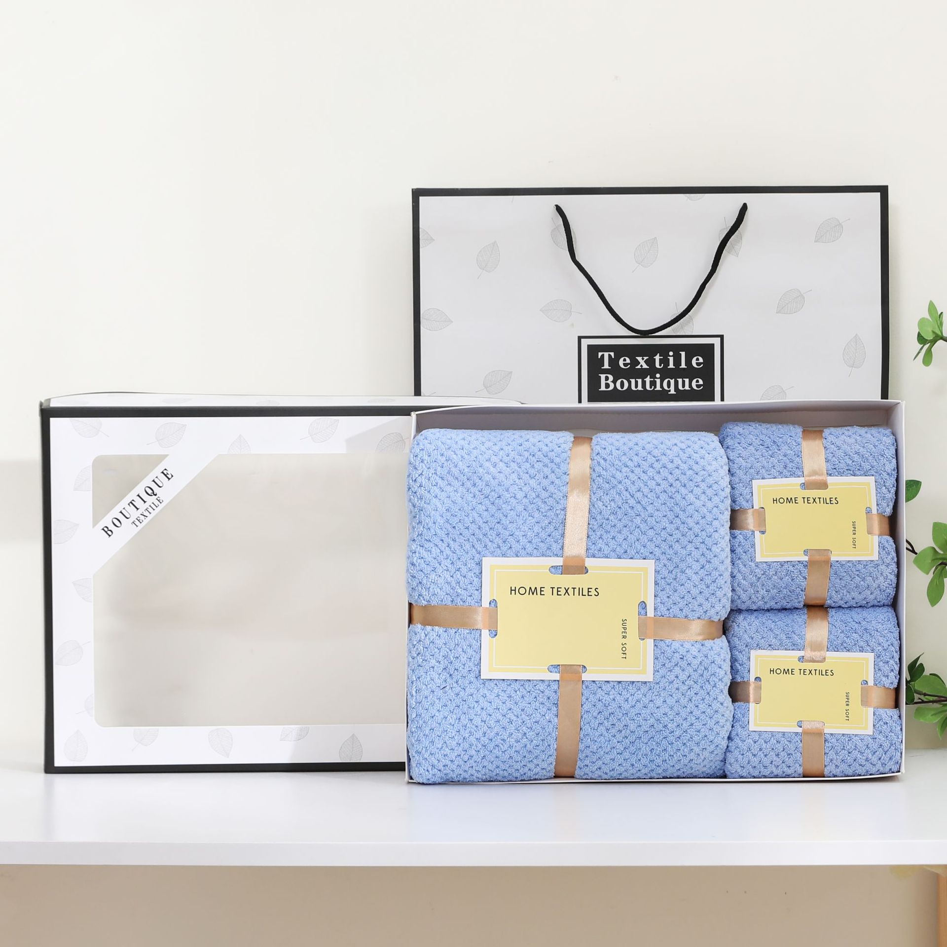 ロータスギフトボックス+紺碧のタオル,グレーの丸のギフトボックス + 茶色のタオル,ブルーソフトギフトボックス+タロイモパープルタオル,リーフギフトボックス+ゴールドスレッドイエロータオル,ブルークラシックギフトボックス+アズールタオル,赤いギフトボックス+温かみのあるオレンジ色のタオル