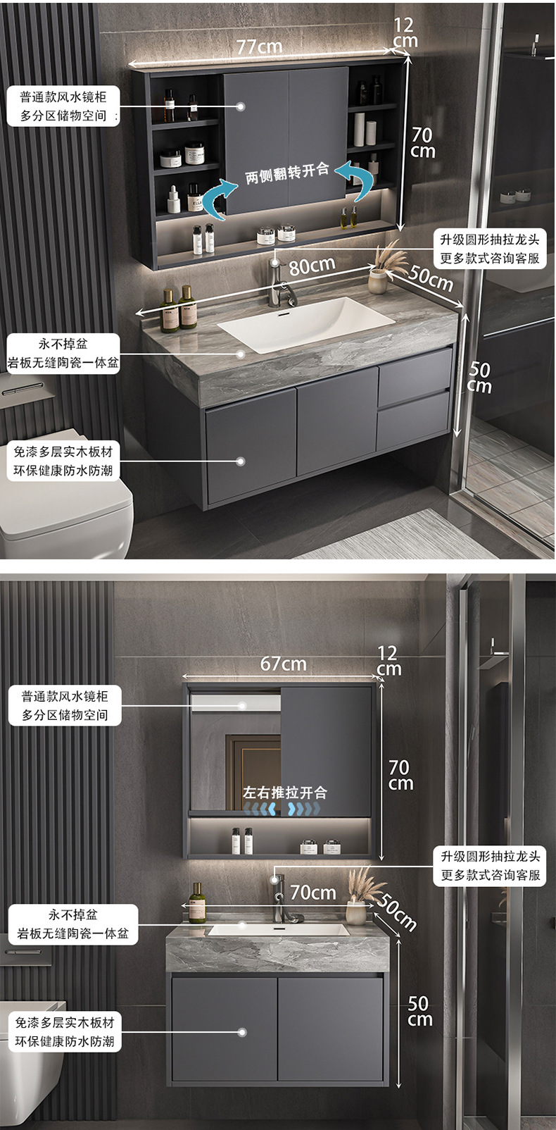 シングルキャビネット,適合する洗面器が含まれています,ミラー付きキャビネット