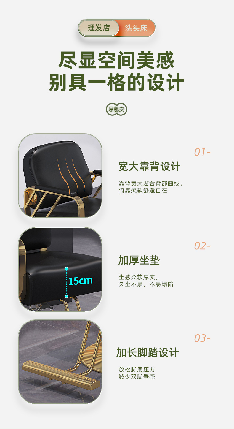 シャンプーベッド、理髪店、モダンでシンプルなフラッシングベッド、ヘアサロンセラミック洗面器、半横たわるレザーソフトバッグシャンプーベッド