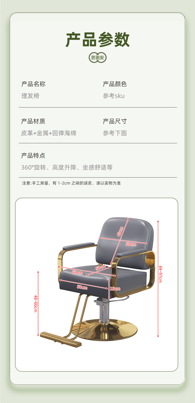 理髪椅子メーカー卸売、ヘアサロン用カットチェア、理容室用椅子、回転昇降式サロンチェア、軽量高級タイプ
