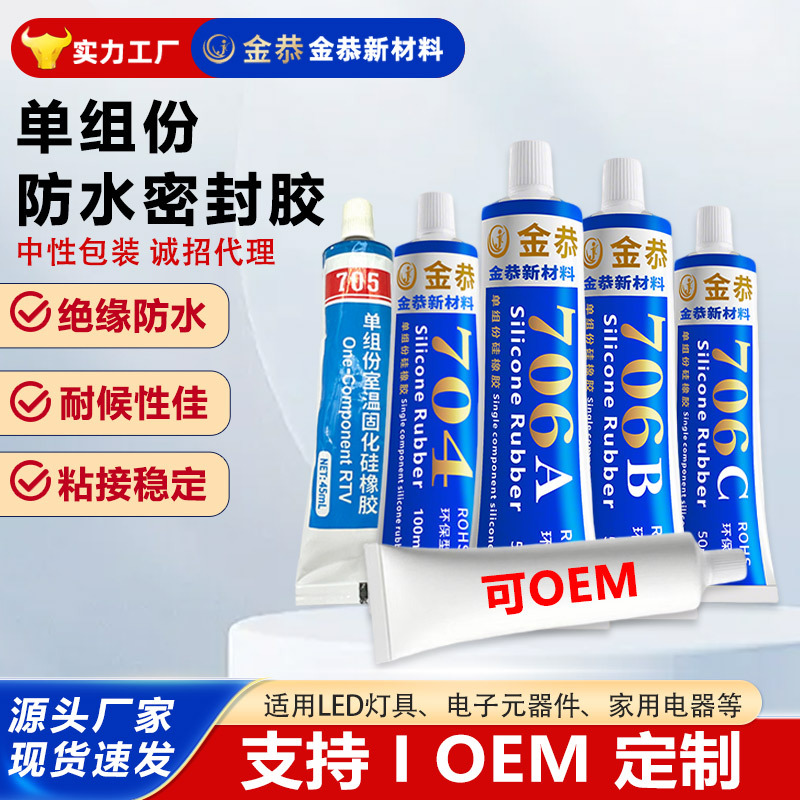 704/705/706有机硅橡胶全透明半透明白黑色防水耐高温密封粘接胶