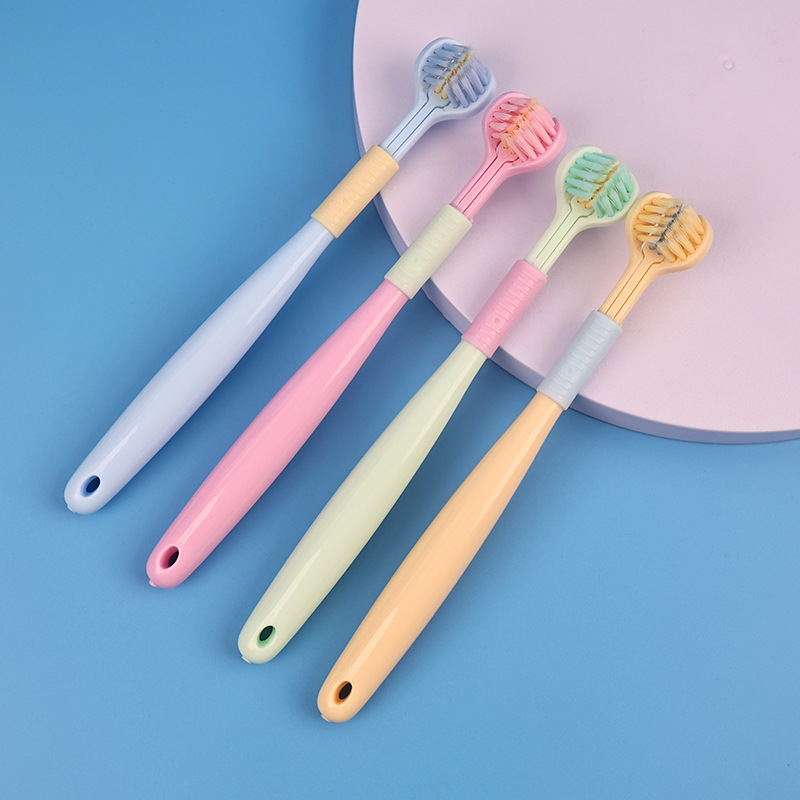 ドロップシッピングアップグレードされた 3 ヘッド U 字型歯ブラシマカロンソフト毛大人の歯ブラシ三面歯ブラシ舌苔を削除 935