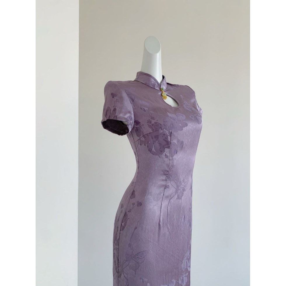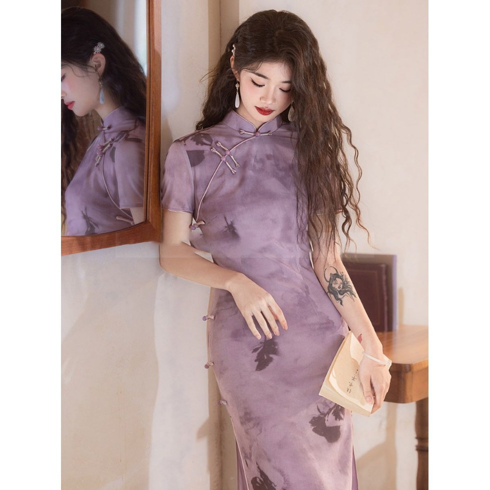 紫のチャイナドレスの女性の夏の新しい中国式の絶美2025新型の気質のハイエンドの復古の日常は素雅な国風を着ることができます。