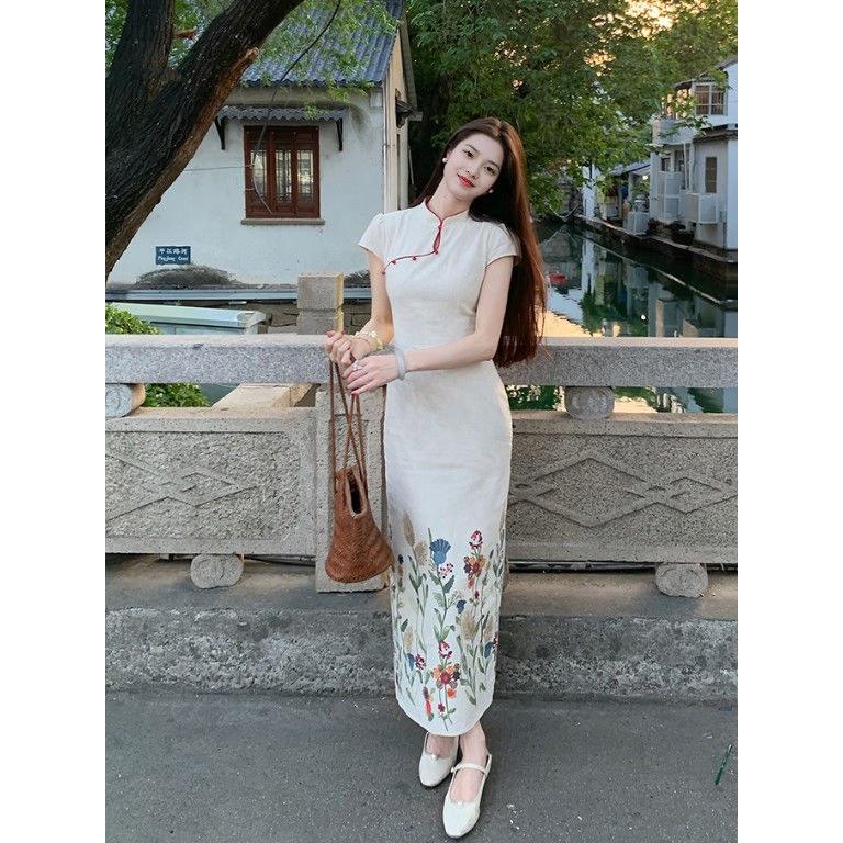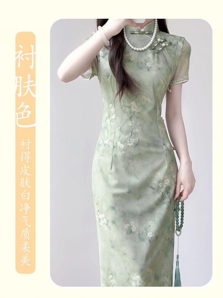 夏のチャイナドレス 2025 新しいレトロ中華民国気質美しい痩身若いスタイルデイリーガール改善ドレス