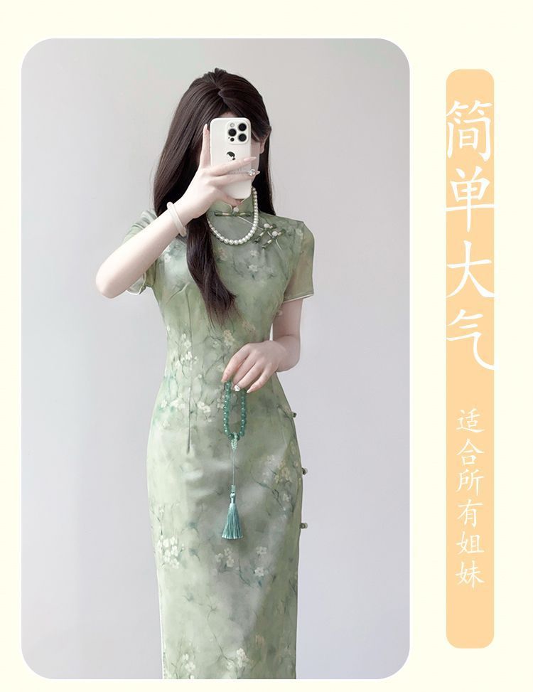チャイナドレス2025新型気質高級若年モデル少女グリーンワンピース痩せ新中国式日常ワンピース