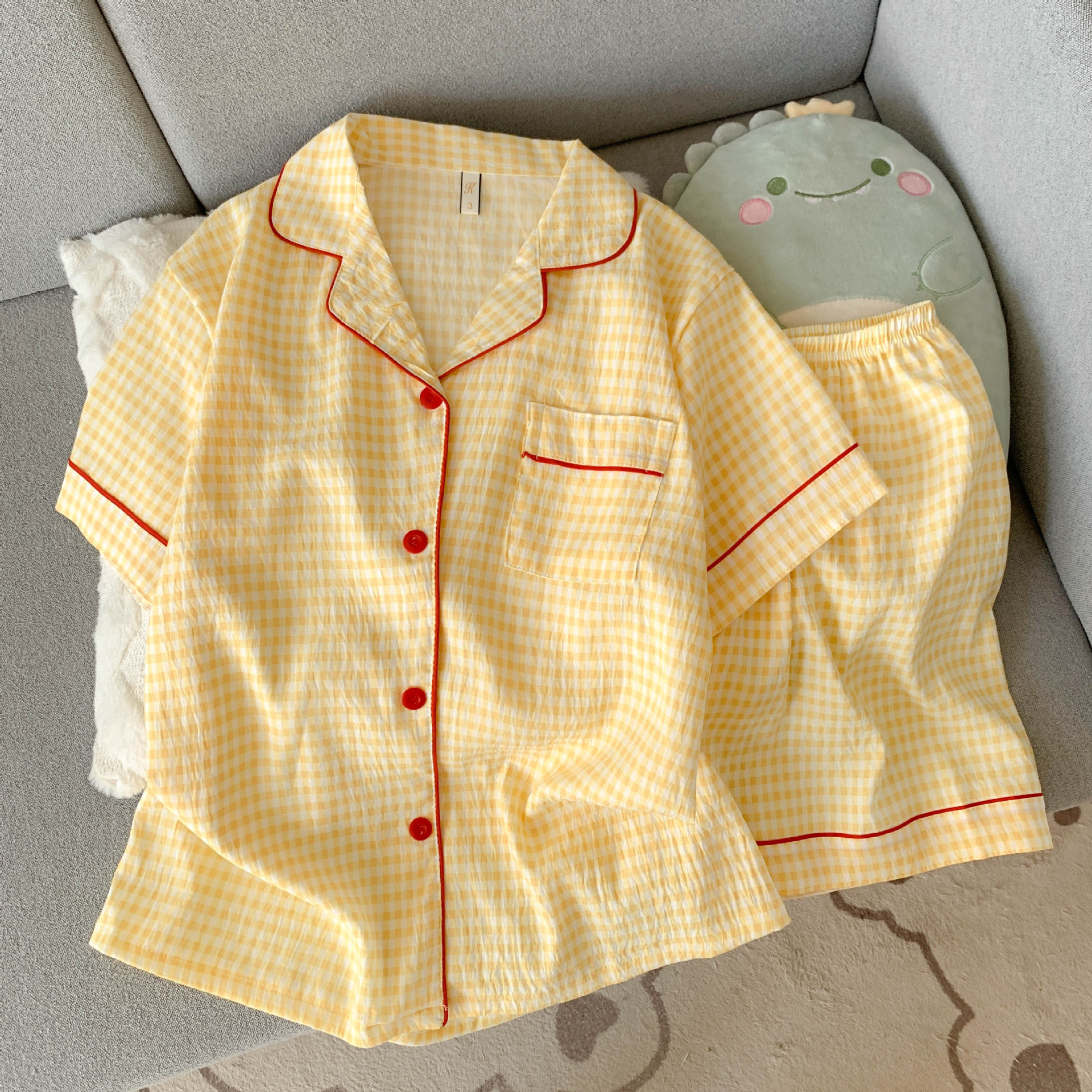 云朵棉睡衣女夏季薄款可爱卡通短袖短裤宽松网红家居服套装可外穿
