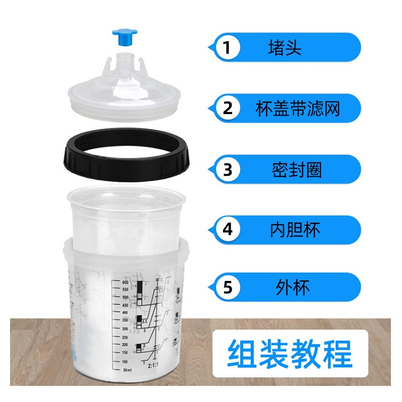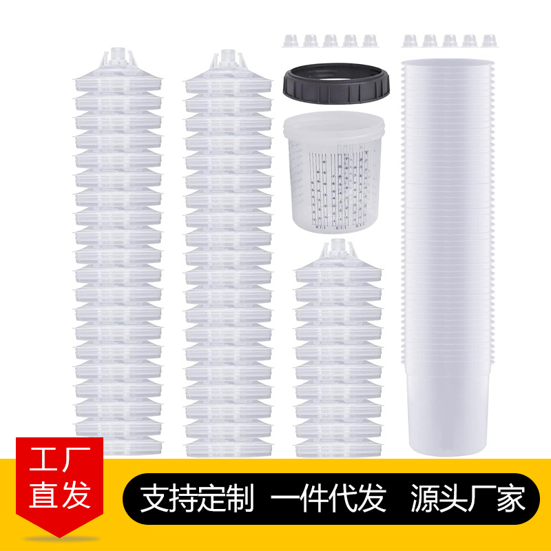 喷漆枪一次性600ml油漆杯喷枪气动免洗壶套装汽车喷漆调漆刻度杯