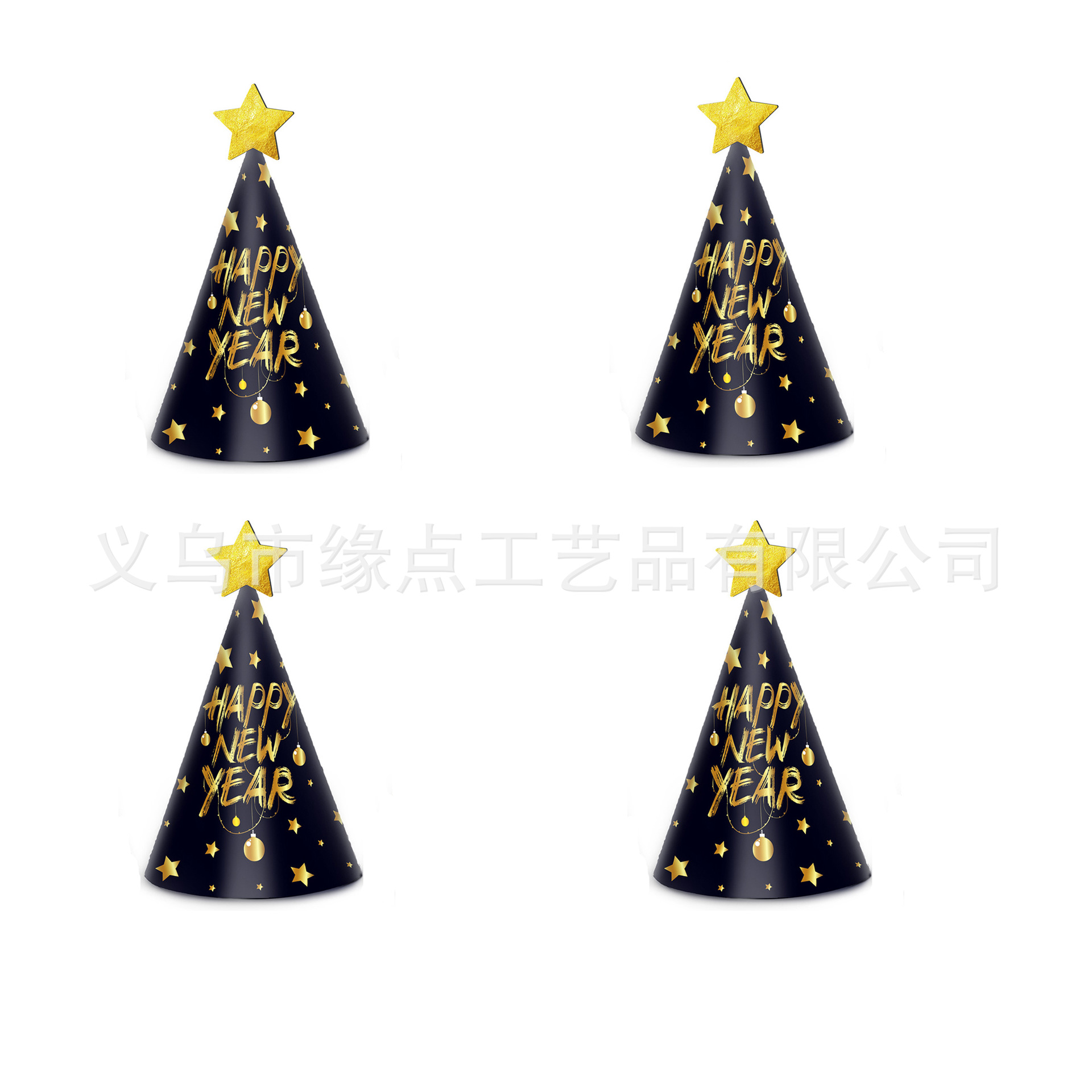 2026跨境新年元旦晚会派对帽跨年儿童聚会黑金烟花新年帽批发定制