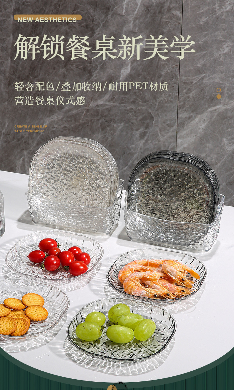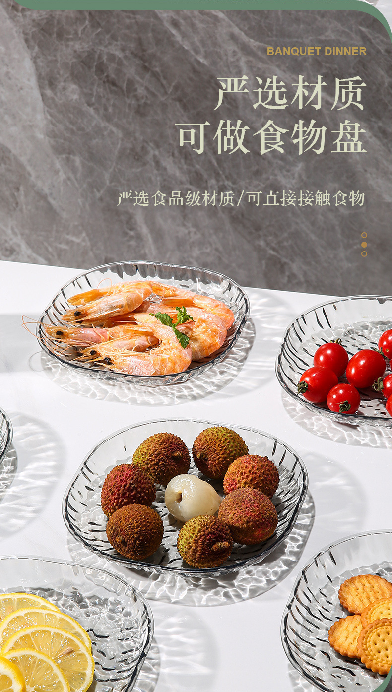 轻奢简约冰川纹家用吐骨碟餐桌垃圾盘网红透明桌面吐骨碟小盘子套
