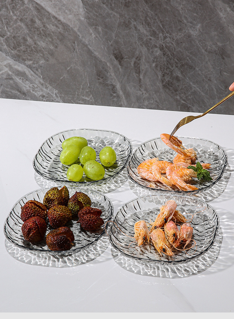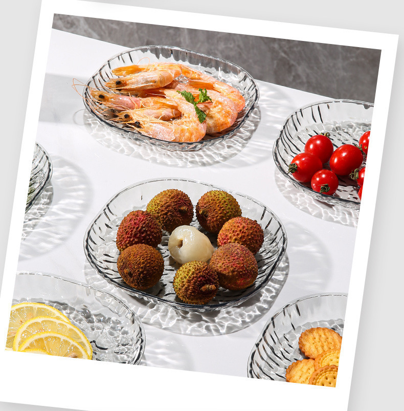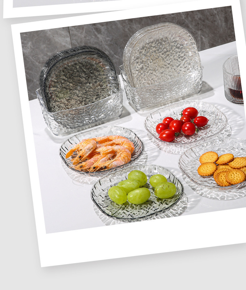 軽くて豪華でシンプルな氷河模様の家庭用骨吐き皿、テーブルゴミ皿、ネット有名人の透明な卓上骨吐き皿小皿セット