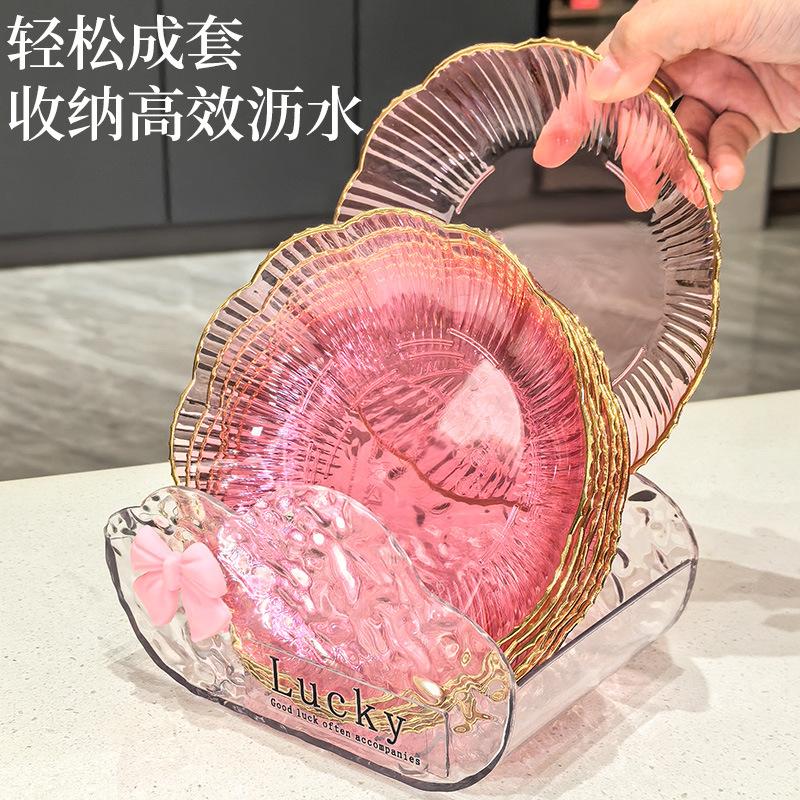 轻奢简约套装碟子家用吐骨碟餐桌垃圾盘网红透明桌面冰川纹吐骨碟