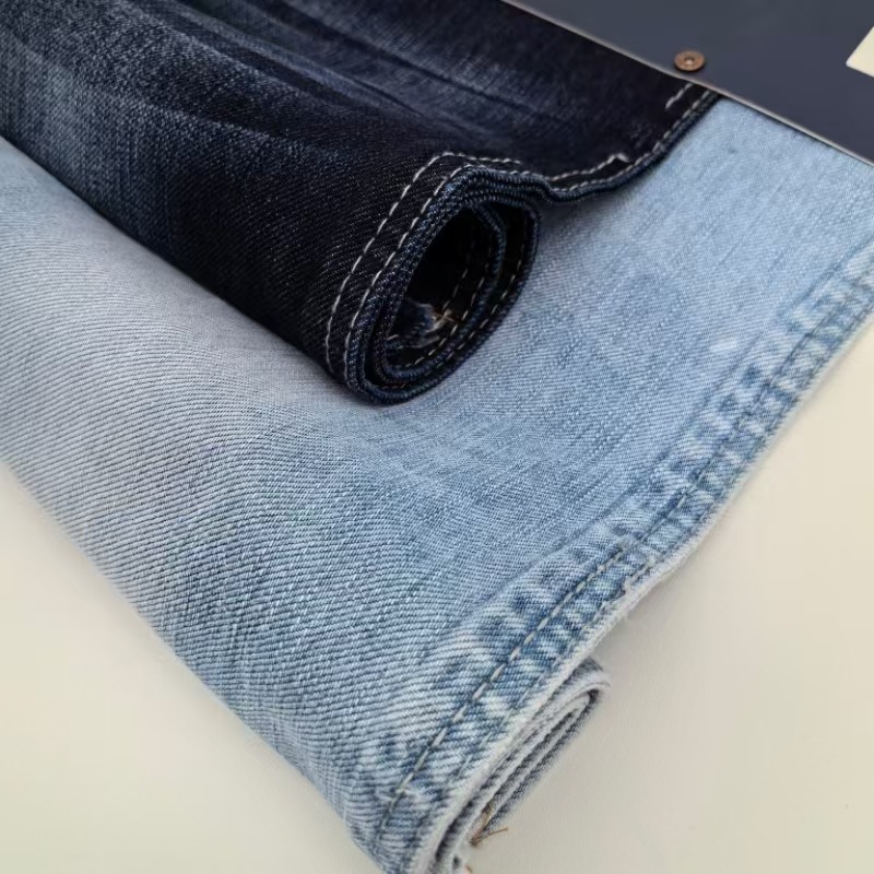 - 根据弹力方向的不同,单向弹力牛仔可细分为“经弹”(经向弹性)或“纬弹”(纬向弹性)。这类面料在传统牛仔中较常见,例如日本筱原纺织的弹力牛仔布通过经纱绳染和纬纱斜纹织法实现特定方向的弹性。