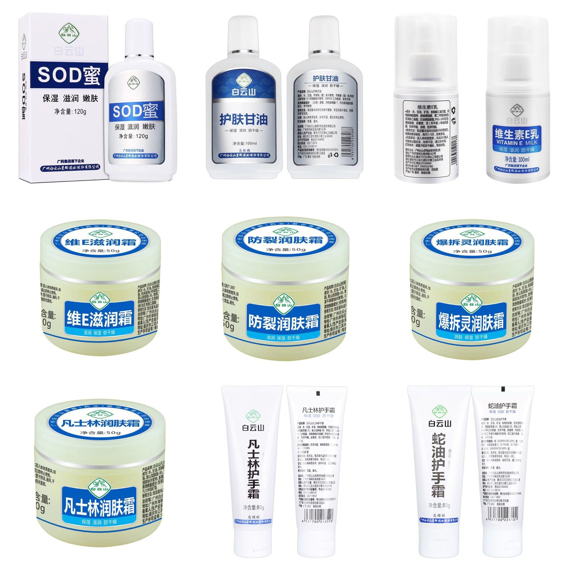 白云山SOD蜜护肤甘油防裂润肤霜维E滋润霜爆款一件代发