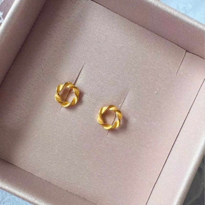 999足金包银首饰麦穗妞纹花环耳钉送女友闺蜜生日520情人节礼物