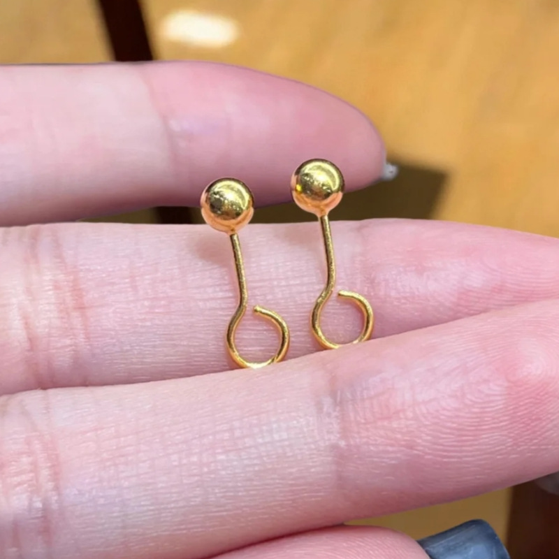 999足金包银光珠豆豆弯钩耳钉养耳棒经典简约耳饰极简金包银首饰