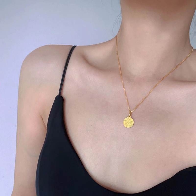 999足金包银首饰品双面小福牌吊坠福字小圆牌挂坠母亲节节日送礼