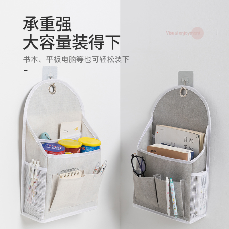 サイドポケット付きダブルポケット布芸収納掛け袋学生寮収納神器壁掛け収納袋