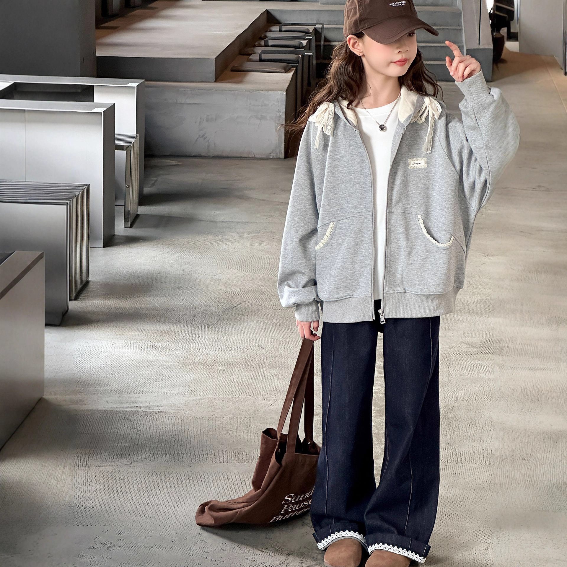 女童外套秋装2025新款女大童洋气时髦连帽卫衣宽松休闲拉链衫开衫