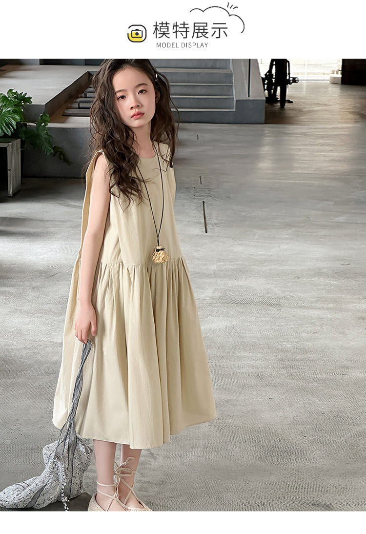 女の子ワンピース夏2025新型子供洋気大童夏服天糸薄いノースリーブチョッキデニムスカート