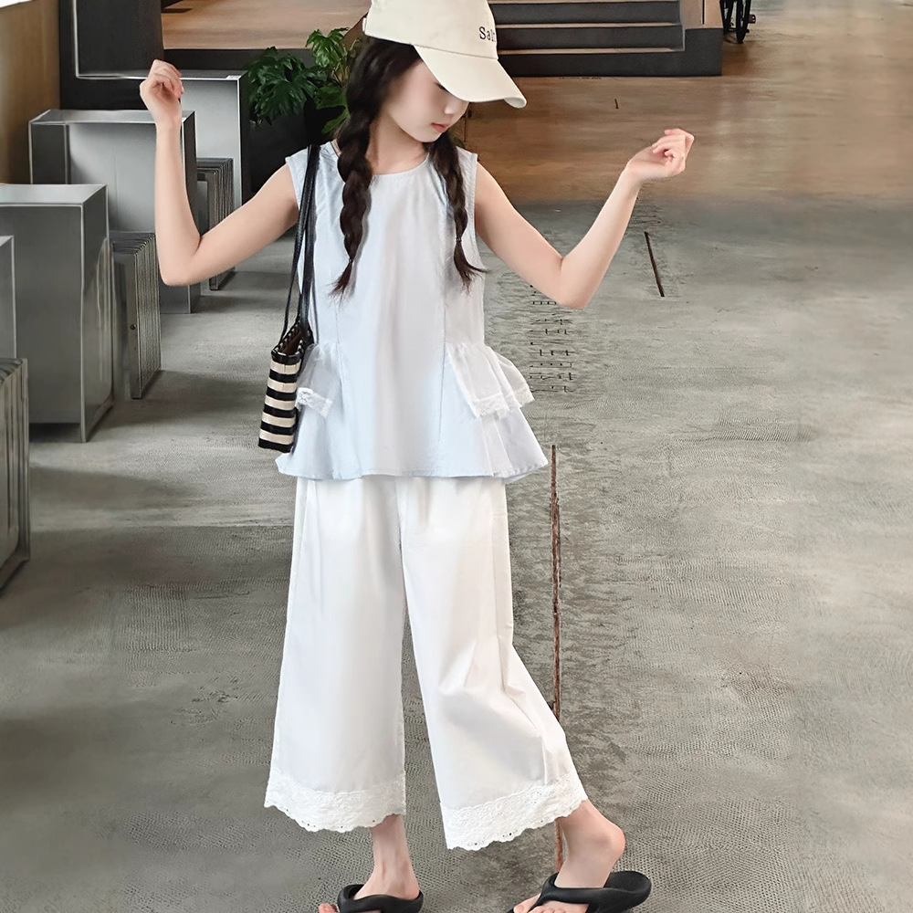 女の子サマースーツ 2025 新しい子供のファッショナブルな夏服大きな子供のノースリーブベストカジュアルパンツ 2 点セット