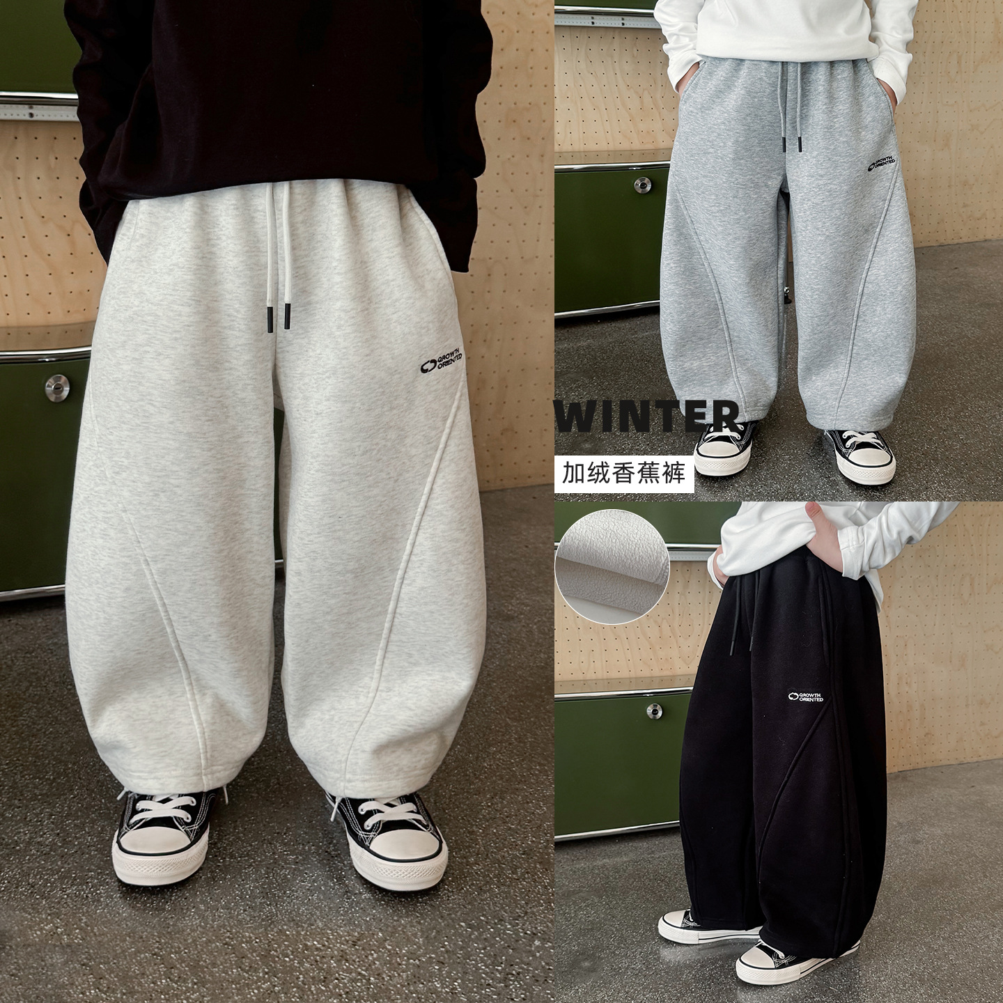 童酷2025男童冬季新款百搭字母刺绣宝宝休闲裤拼接加绒儿童卫裤潮