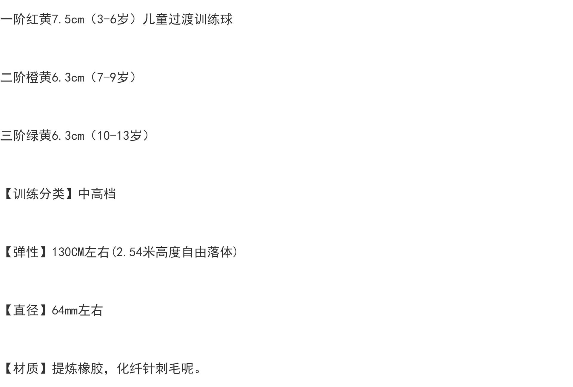 緑色のテニスボール 10 個、減圧 25%、弾性 130,オレンジ色のテニスボール 10 個パック、圧力 50% 削減、弾力性 130,赤いテニスボール 10 個、減圧 75%、弾力性 130,緑色のテニスボール 50 個、減圧 25%、弾性 130,オレンジ色のテニスボール 50 個パック、圧力 50% オフ、弾力性 130,赤いテニスボール 50 個、減圧 75%、弾力性 130